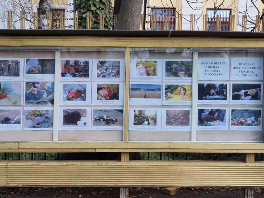 Și tot de la invazie încoace, am mai observat o chestie. Pe exteriorul gardului ambasadei, adică la stradă, pe unde trece lumea, există un panou din ăla, un fel de avizier. Panou pe lângă care am trecut, cum ziceam, de zeci de ori, fără să-mi atragă nimic atenția. Nici n-avea ce, probabil era plin de articole despre mărețele realizări ale bravului lor conducător, tovarășul Putin.