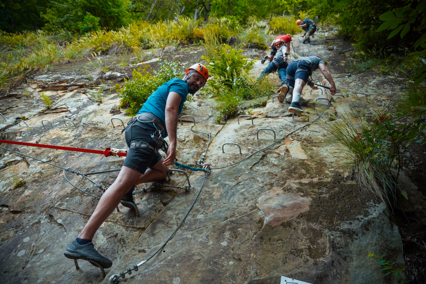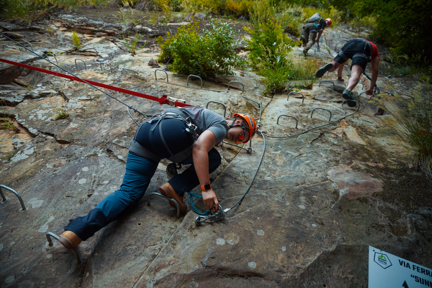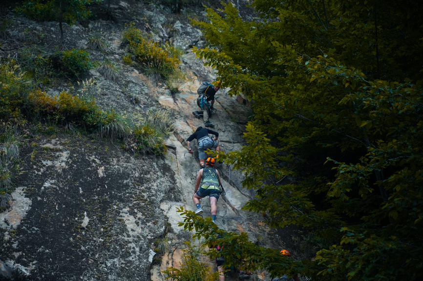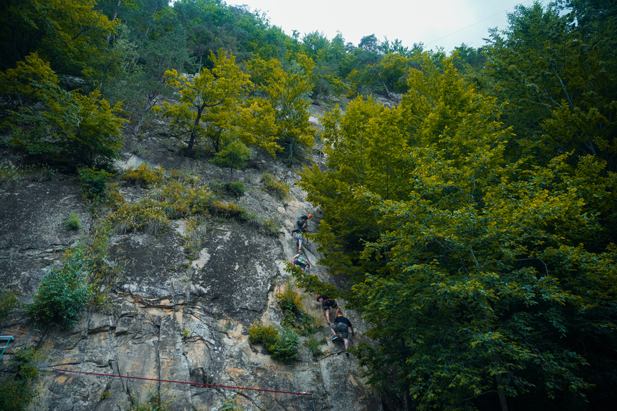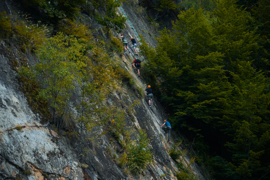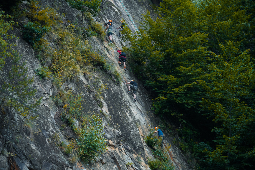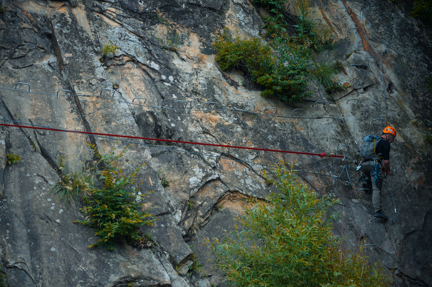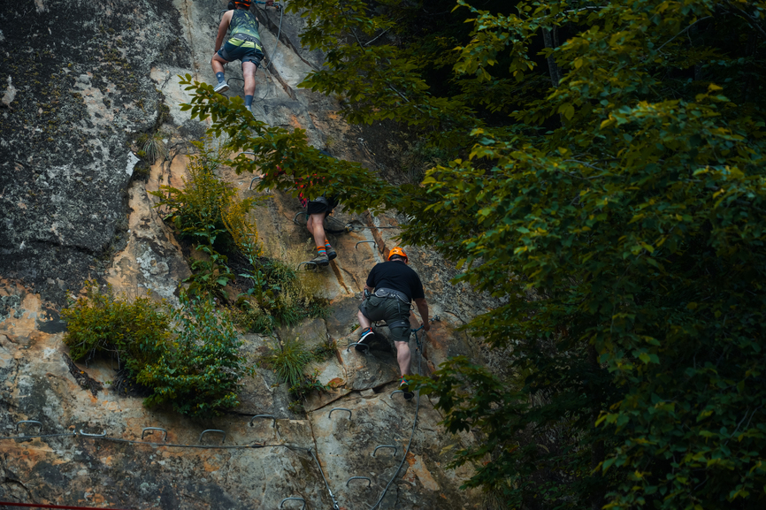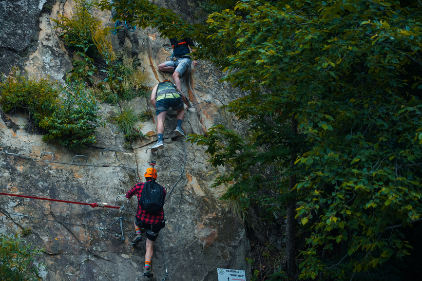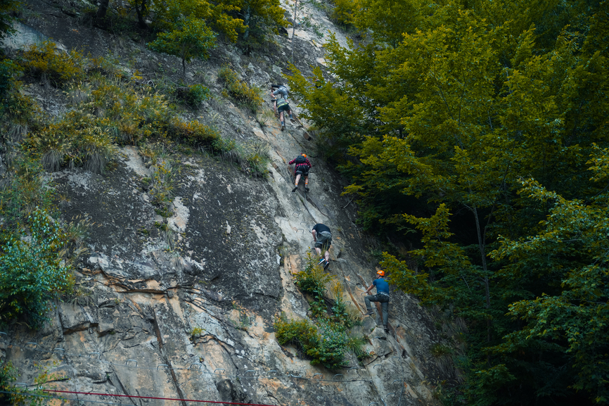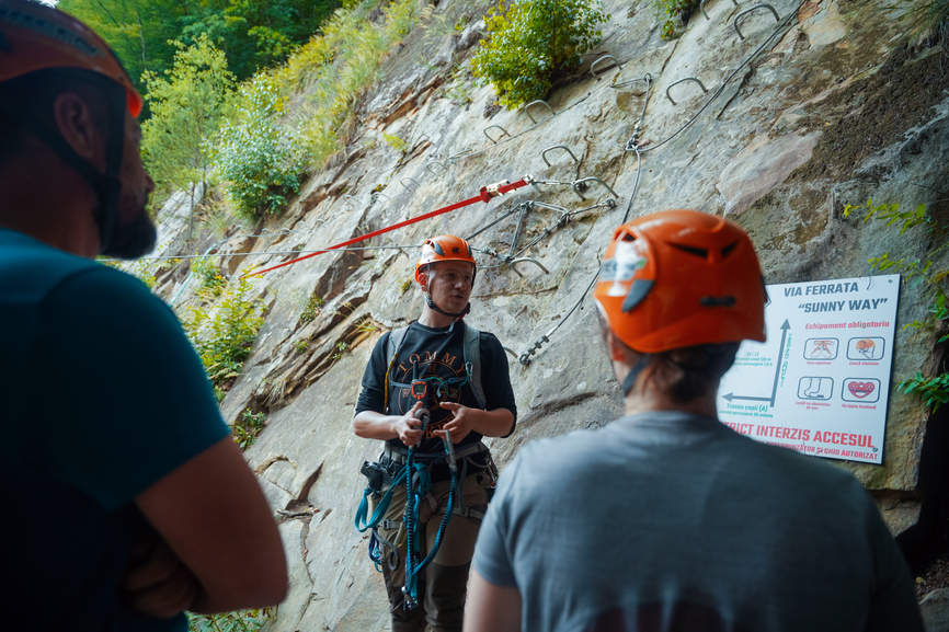 Pentru că acest tur este și despre experiențe, nu doar despre condus, în a doua zi mașinile au stat cuminți în parcarea de la Grand Prestige Igloo, în timp ce noi ar fi trebuit să experimentăm o lejeră ascensiune de perete montan stâncos, la Via Ferrata, și o tiroliană.