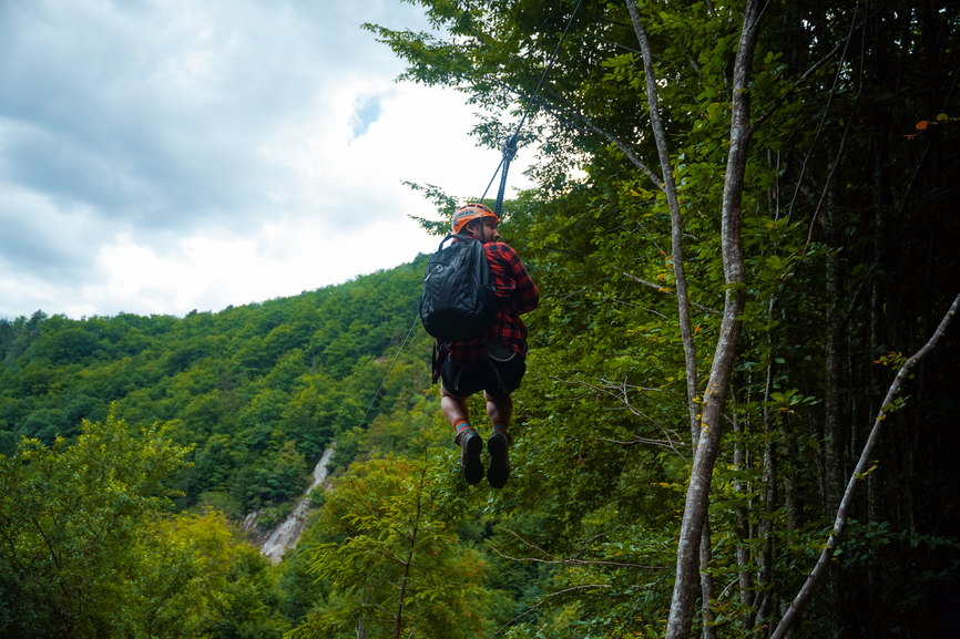 Ai o tiroliană de 607m, cu plecare de la 55m înălțime.