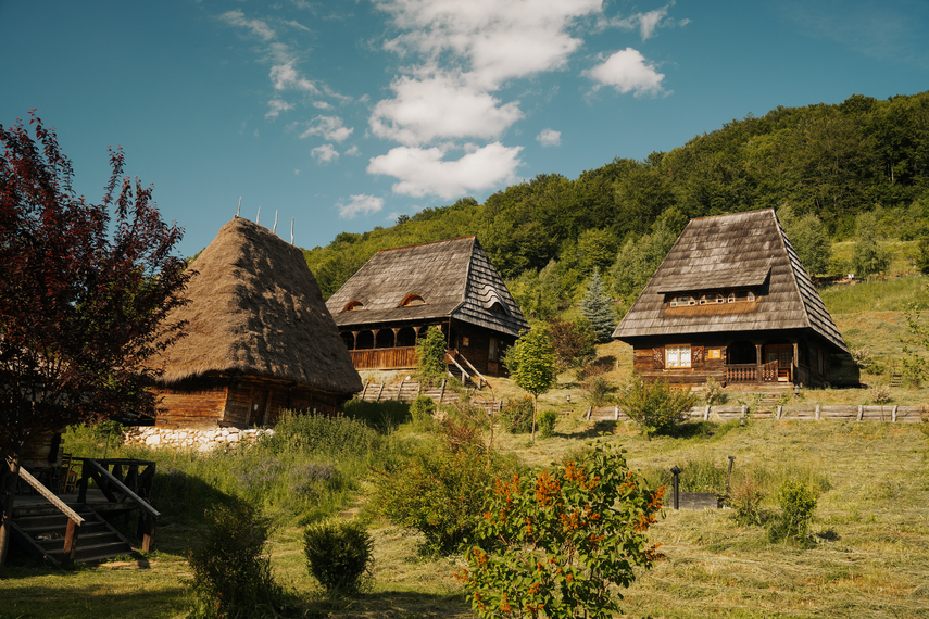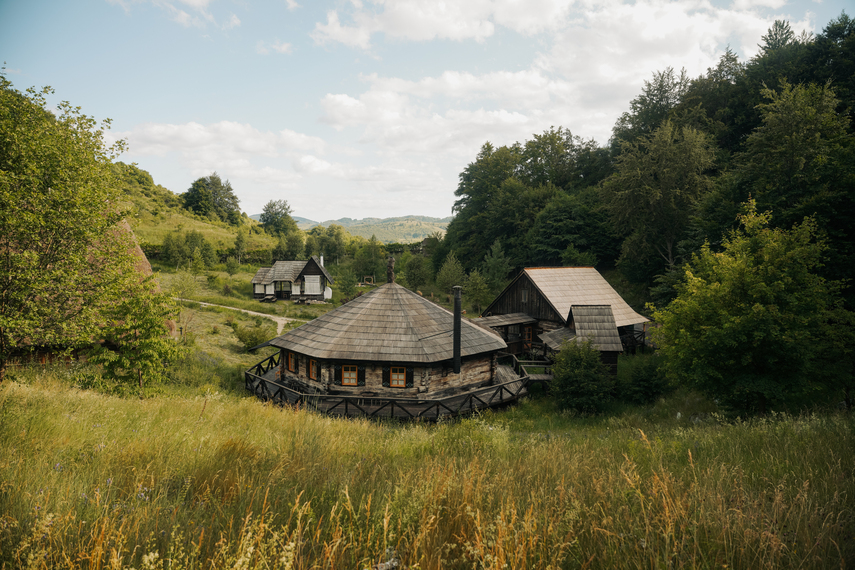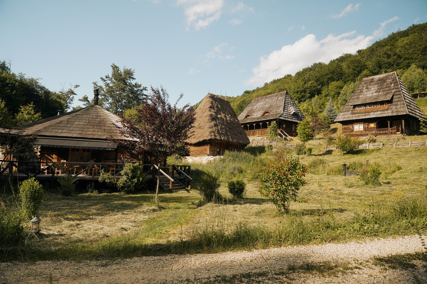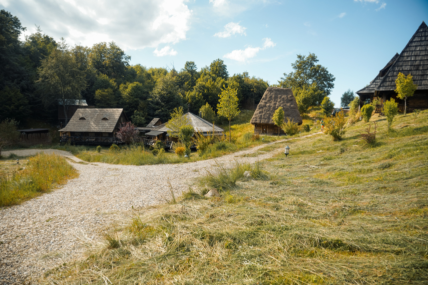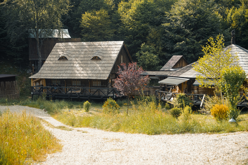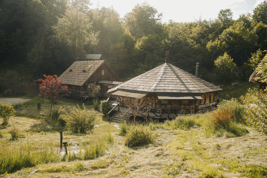 Poate nu e foarte clar că nu sunt case noi, construite acum, dar făcute să semene cu casele tradiționale transilvănene. Nu, sunt case cumpărate din satele Transilvaniei, demontate, transportate la Raven’s Nest, și montate la loc. De-aia când zic că sunt autentice, practic nu se poate mai autentic de atât.