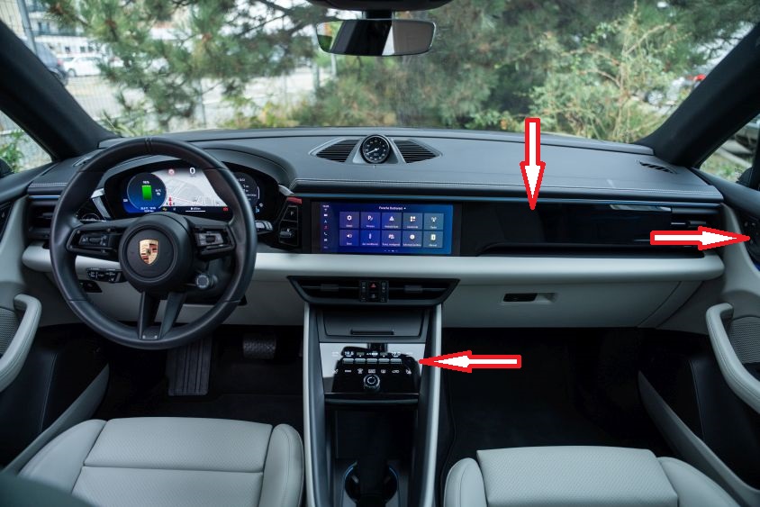 Ah, ba nu, ca să fiu foarte sincer, există totuși un lucru care mă deranjează vizual la Macan 4: plasticul lucios folosit la interior. În special cel de pe bord, că mai are și pe uși, după cum se poate observa.